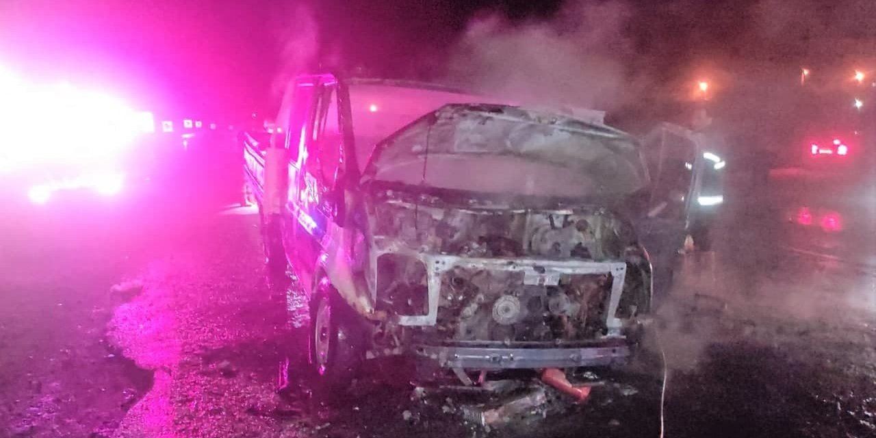 Kahramanmaraş'ta seyir halinde alev alan kamyonet kül oldu