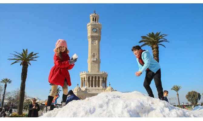 İzmir'e kar 'kamyonlarla' geldi