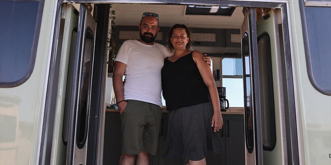 Sürekli iş seyahatine çıkan çift konaklama sorununu eve dönüştürdükleri otobüsle çözdü