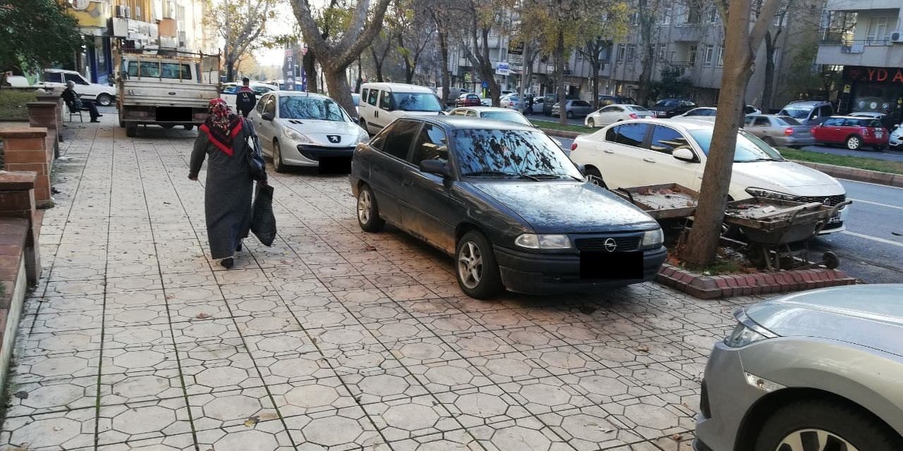 Kahramanmaraş’ta araçlarını kaldırıma park eden sürücüler yayaları zor durumda bırakıyor