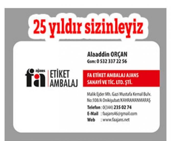 Kahramanmaraş’ın perde arkasındaki bir kültür insanı. Düşünebilme, okuyabilme ve zihnindeki girift soruların cevabını bulabilme adına, fikrin derin ıstırabını yıllarca çeken bir değerli ağabey Alaattin Orçan… Yaşadığı ülkenin ve kendi öz milletinin kalitesini yükseltme uğruna, yapabileceği maddi ve manevi hiçbir yükten çekinmeyen… Posalaşmış sahte balon adamları sadece bir ‘iğne’ ile patlatan… Onların yüzlerine karşı ‘sen sahtesin’ ‘git ve gerçek ol’ diye çekinmeden söyleyebilen… Kısacası; ‘rasyonel bir zemin içerisinde’ ‘gerçeklikten kopmamaya çalışan’ duygunun engellerinden akıl realitesine sığınan adam… Yıllar önce kurduğu Fa Etiket Ambalaj Ajans Sanayi Limited Şirketi şehrimiz adına önemli bir müessese… Özellikle kitap ve dergi basımı açısından Kahramanmaraş için büyük bir şans FA AJANS… Bu zamana kadar yayınlanan onlarca kitaba yepyeni 6 yeni kitap daha eklendi.
