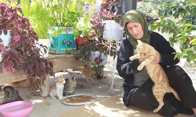 Adıyaman'da kedileri ile birlikte yaşayan Veziha İzci, 56 yıldır beslediği kedilerine gözü gibi bakıyor.