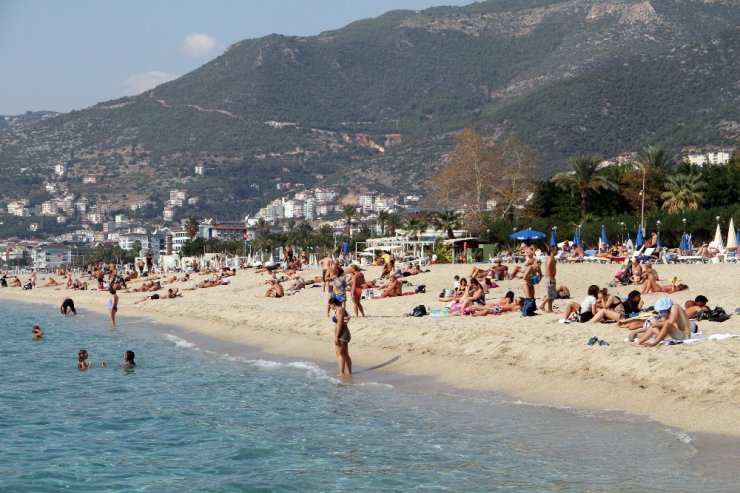 Alanya'da kasım ayı ortalarına gelinmesine rağmen yazdan kalma günler yaşanıyor. Tatilciler sıcak havanın tadını yüzerek ve güneşlenerek çıkarıyor. Hava sıcaklığının 24, deniz suyu sıcaklığının 23.4, nem oranının yüzde 47 ölçüldüğü ilçede güneşli havayı fırsat bilen yerli ve yabancı turistler, soluğu dünyaca ünlü Damlataş, Kleopatra ve Keykubat plajlarında alarak denize girdi. Bazı turistler ise kumlara kendilerini atıp güneşlenirken müzik dinleyerek kitap okudu. Sahilde yürüyen çiftler, deniz yataklarıyla açılarak güneşlenen turistler ve kumsalda oynayan küçük çocuklar ise renkli görüntüler oluşturdu. Plajda uçuşan güvercinler ise turistlerin ilgi odağı oldu. Bazı tatilciler ise teleferiğe binerek Alanya'nın doğal güzelliklerinde gönüllerince eğlenme fırsatı buldu. Meteoroloji yetkilileri, sıcak havanın perşembe gününe kadar devam edeceğini kaydetti.